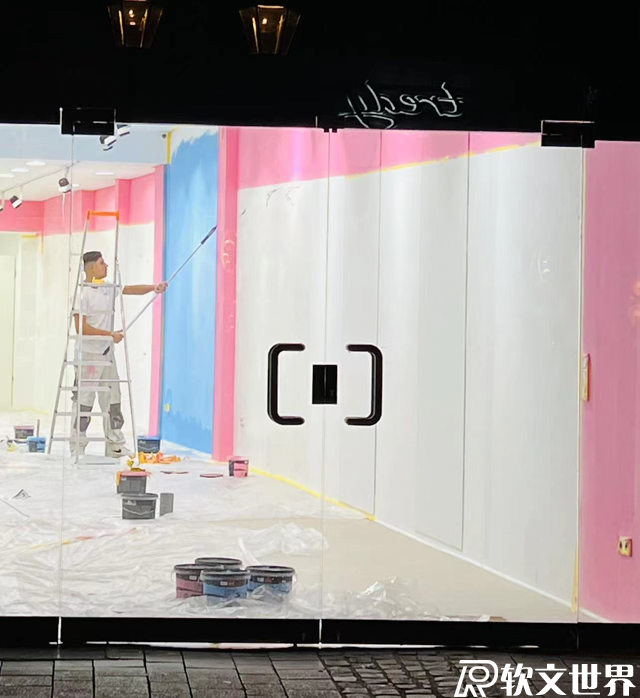 竟然在步行街看到一個小哥在默默地刷著墻