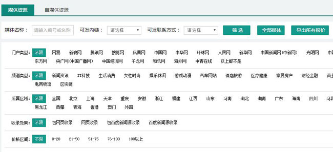 2、注冊賬號進(jìn)入后臺頁面,首先選擇搜索,看看有沒有對應(yīng)的新聞網(wǎng)站(需要發(fā)布什么媒體都可以進(jìn)行搜索,軟文世界目前有1萬多家新聞媒體可以選擇)