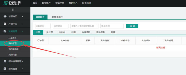 4、提交后,新聞稿一般當(dāng)天都能出稿,進(jìn)入后臺“稿件管理”中可以看到發(fā)稿狀態(tài)和出稿鏈接